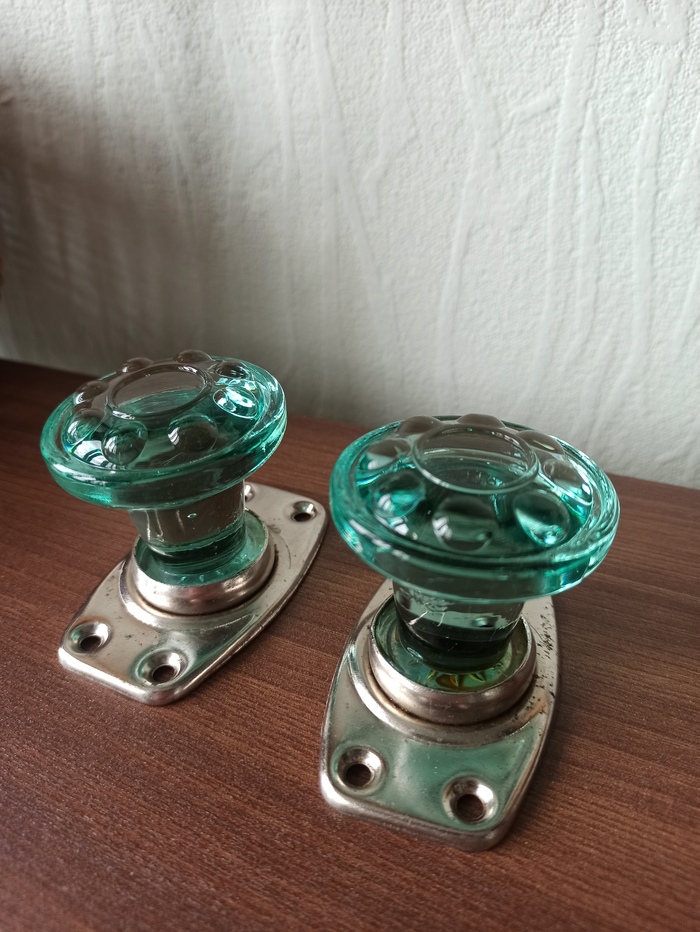 Попались такие советские дверные ручки. Стекло, мятный цвет
