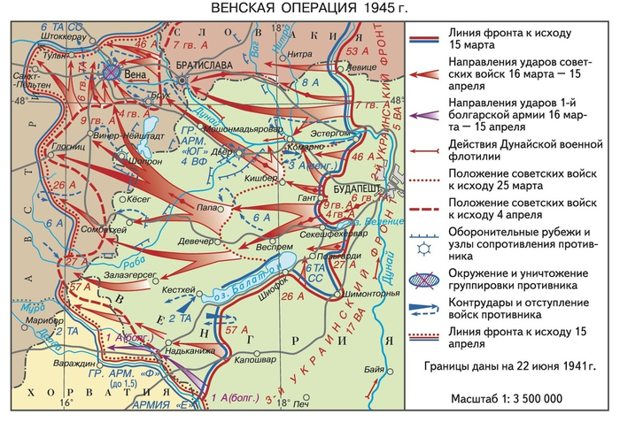 Попытки пробиться в город будут идти до конца января и закончатся только потерями. А в середине февраля падет и столица Венгрии. А это не только последняя нефть и бокситы угасающего рейха, но, наверное, немаловажное значение имела возможность отступить в Австрию в так называемую Альпийскую крепость, из которой врага выбить было сложно, но для этого надо было обезопасить Вену. А Берлин в таком случае можно было оставить. Поэтому в марте 1945 года немцы бросают в бой самую мощную в рейхе 6-ю ТА СС, имевшую до 900 единиц бронетехники в ходе операции "Весеннее Пробуждение". Цель была пробиться к Дунаю и закрепиться на его берегах, обезопасив Австрию с её промышленностью и какими никакими ресурсами, включая нефть. Но это попытка заканчивается провалом и начинается Венская наступательная операция Красной армии. Фронт катится на запад и уже 4 апреля 1945 Красная армия была на подступах Вены - это означало, что последние дни Гитлер проведет в Берлине.