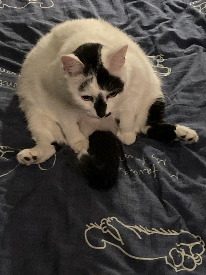 Меня сейчас мой кот Зяма в ступор ввел, замер в позе ему несвойственной. Оказалось, задумался, это он намывашки делал