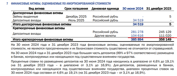 🟣 У компании на балансе просто уйма кэша — 651₽ млрд (на конец 2023 г. — 621,4₽ млрд), большая часть находится на ₽ вкладах (малая часть в валюте), учитывая ставку — правильный ход, ибо % к получению, почти удвоились — 41,7₽ млрд (+79,7% г/г). Долг сократился до 315,1₽ млрд (на конец 2023 г. — 346,2₽ млрд), как вы понимаете чистый долг отрицательный, что намекает на устойчивое фин. положение эмитента.