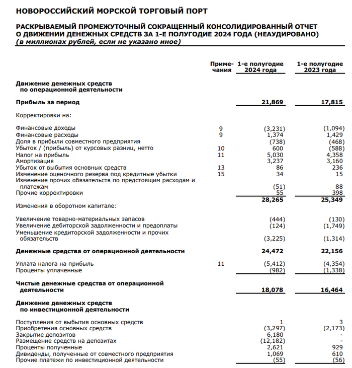 НМТП отчитался за I п. 2024 г. — отличный результат на фоне роста тарифов и процентов по кубышке, но дивидендная база не впечатляет⁠⁠