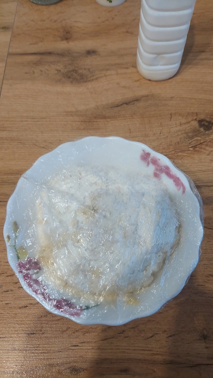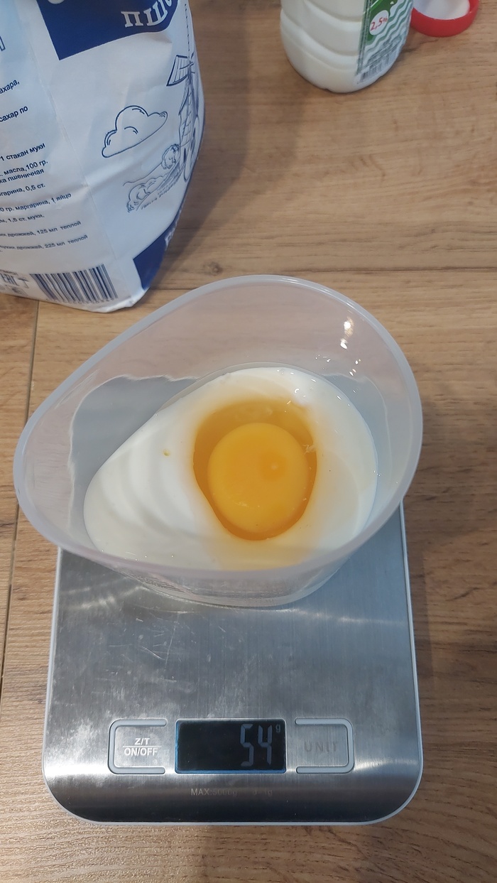 Мука - 400 грамм (но это не точно, потому что мука бывает разной и в некоторых случаях придется подпылять и всё такое, поэтому может получиться около 500 грамм, но начинайте с 400, потом просто немного добавите, чтобы тесто не липло к рукам)