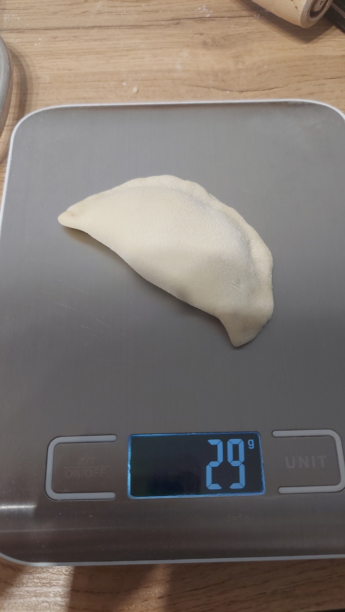 У меня уже был фарш 66/34 - говядина/свинина. Я брал 450 грамм фарша. И на такой вес, теста надо в 2 раза больше или если использовать только это тесто, то всё связанное с фаршем - делите пополам. Чтобы ничего не осталось.