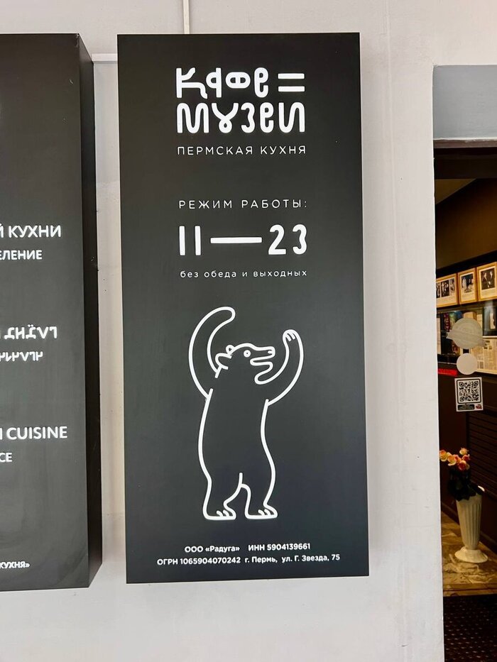В самом кафе интересные интерьеры. Оформлено под коми-пермяцкую избу, а на втором этаже еще и мини-музей мыши. В меню много всего вкусного, отдельно отмечу морошковую настойку. Несколько фото выложу в галерею.