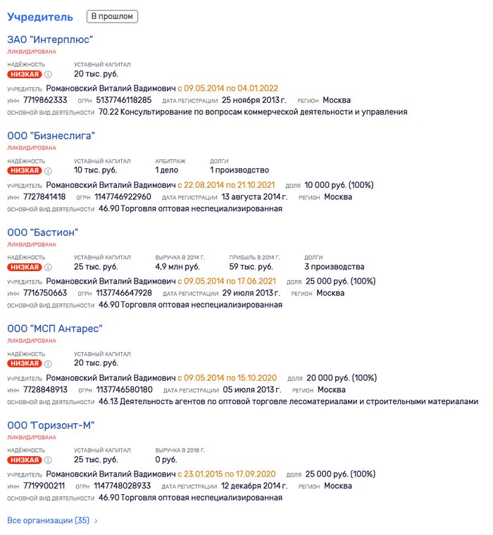 Кстати, не нескольких, а дохера скольких. Виталий Вадимович был учредителем и руководителем аж в 42 компаниях, в 35 из которых он же являлся учредителем.