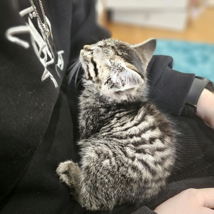 Через сутки я решилась помусолить ему ушко. Котик уже ходил на руки к мужу и дочери и мы ущнали его пол. У нас был мальчик, маленьктюий беззащитный мальчик, ничем не вылелявшийся из тысяч. В общем, проявил себя, как заядлый тракторист и мимишный котейка. Выпив кофе и обдумав его дальнейшие перспективы, я сделала несколько продажных фото его усов и разместила объявку на Авито.