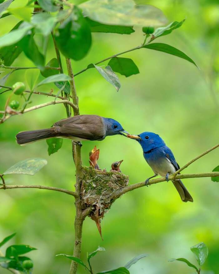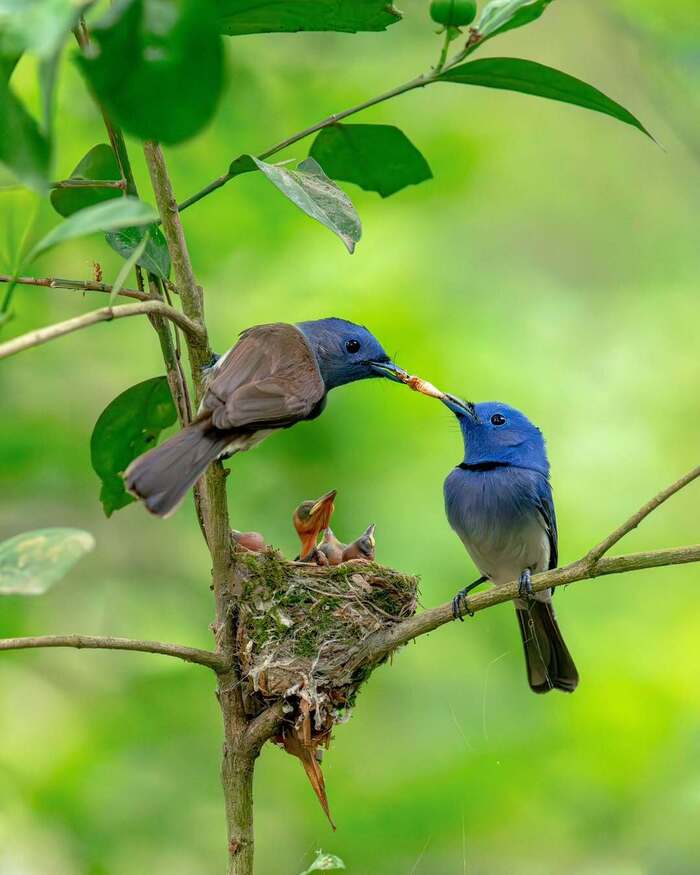 Черноголовые монархи с птенцами⁠⁠