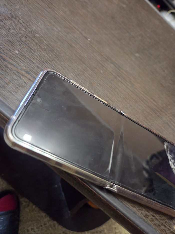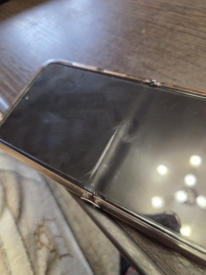 Знакомьтесь, Samsung Z Fold 6, у которого на дисплее после неудачного складывания посередине разлилась нефть.