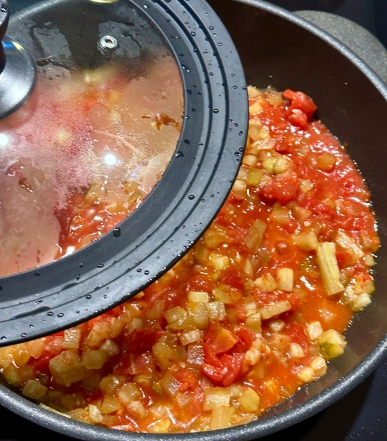 Перемешивая, на небольшом нагреве тушил буквально десять минут. Никаких зажарок!