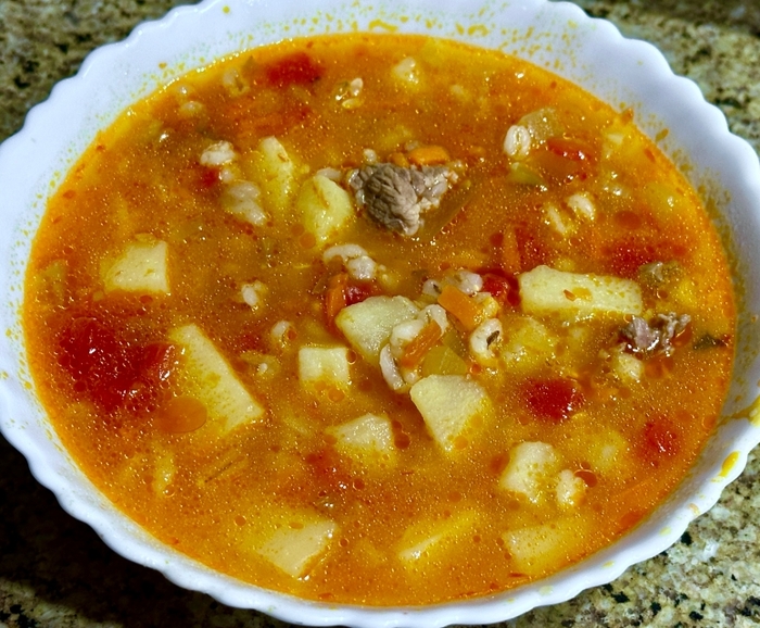 Однако разница видна. И в составе, и готовится по-другому. Да и вкусовыми качествами отличается. Ощущается не только кислинка, но и сливочный оттенок. Да и бульон не такой тягучий. Это скорее суп, а не похлебка. Связано с тем, что перловая крупа варится отдельно и в промытом виде добавляется в бульон…»