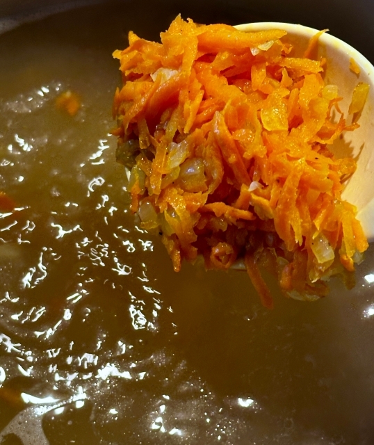 Еще лучше припустить лук с морковкой в небольшом количестве бульона с добавлением масла.