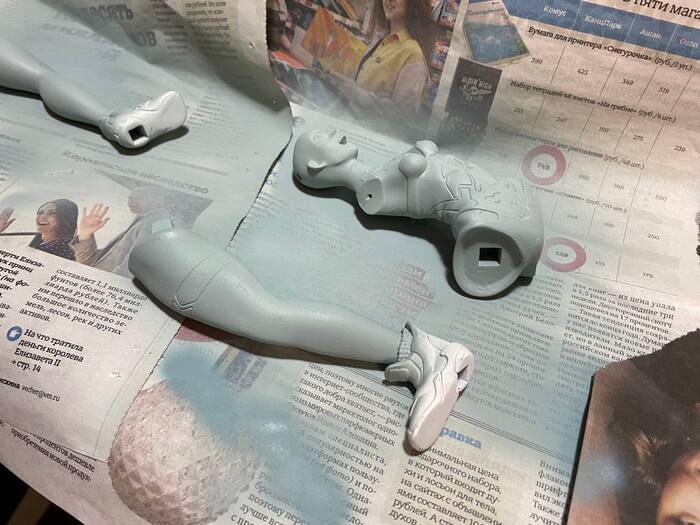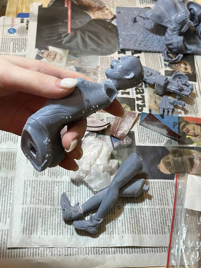 Здесь я распечатала детали для обеих Ребекк, промыла в спирту, засветила ультрафиолетом и избавилась от подставок. Процесс нанесения грунта показывать не буду, т.к. ничего нового Вы там не увидите.