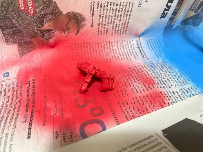 Детали, в которые есть возможность вставить зажимы, закрепляю на них. Если такой возможности нет, то буду красить с двух сторон поочередности.