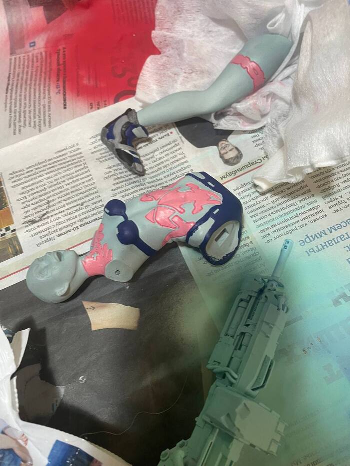 Следующий этап - нанесение основного цвета. Тут комментариев не будет, просто добавлю фотографии процесса. Но могу сказать, что самым приятным этапом был - покраска рук. Не знаю почему, но это доставило мне большое удовольствие.