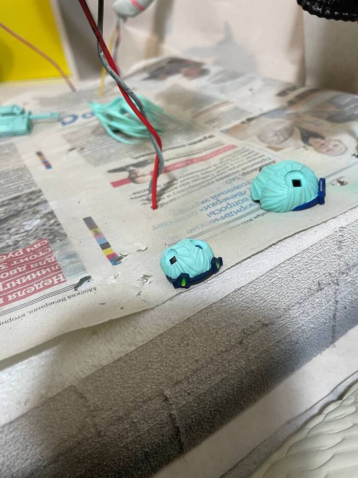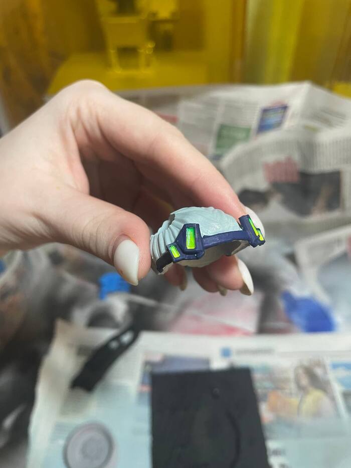 Готовые детали обрабатываем, засвечиваем ультрафиолетом и избавляемся от остатков подставок. В дальнейшем, последний этап был не нужен, т.к. я смогла скорректировать подставки в программе так, что они легко отходили от деталей.
