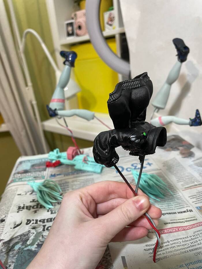 На фотографиях выше нет куртки, т.к. она допечатывалась в последнюю очередь. И под конец возникла проблема. Т.к. опыта в покраске у меня крайне мало, рассчитать краску не получилось. Черная закончилась, а красить в синий мы не захотели.