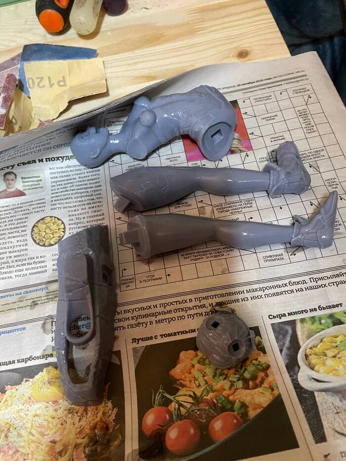 Детали зачищены и готовы к последующим этапам. Начинаем заделывания отверстий, которые делались для вытекания смолы из полостей. После подсыхания шпатлевки - грунтуем.