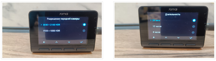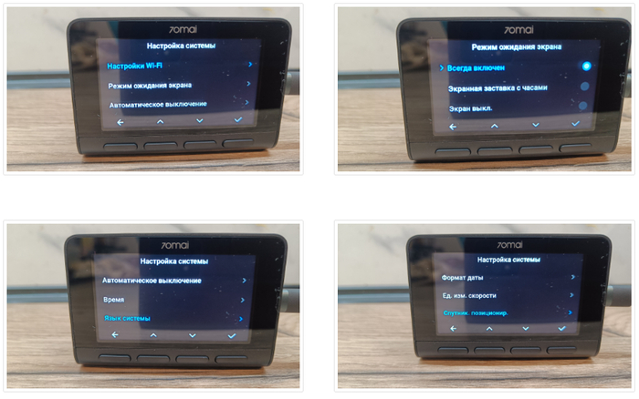 Со стороны направленной в салон присутствует 3 дюймовый экран, а под ним 4 кнопки управления. Надписей на них нет, так как все пояснения появляются в момент настроек.
