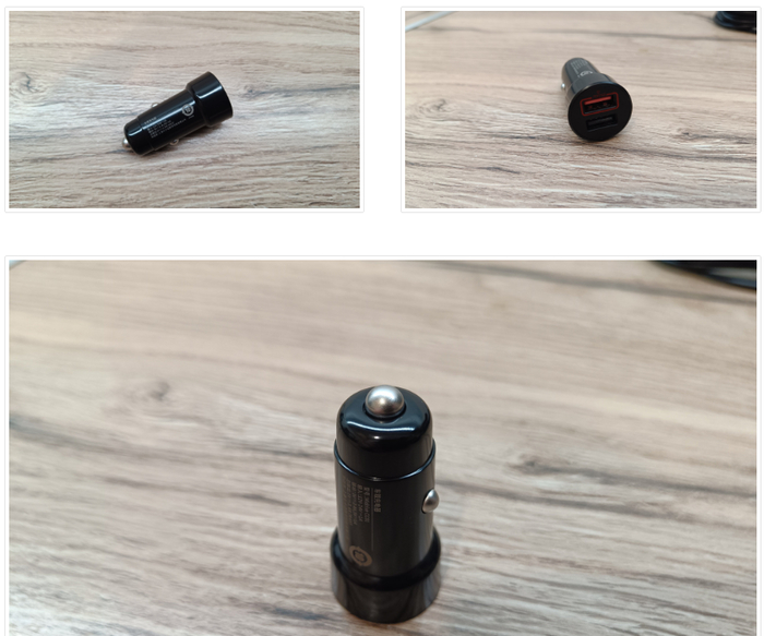 Автомобильный блок питания в фирменном стиле с круглыми контактами. Для пользователя будет доступно два разъема USB. Красным отмечен разъем для подключения видеорегистратора. Основной разъем выдает 2.4 А, дополнительный всего 1А. Но как показала практика, видеорегистратор может работать даже от разъема в 1А. Особой разницы по скорости работы я не заметил.