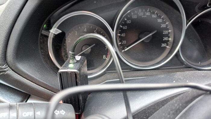 Парковочный кабель 70mai Midrive OBD01 выполнен в форме отдельного блока с возможностью подключения к штатному разъему OBD. Соответственно, в старые автомобили не подключить, если в них отсутствует этот разъем. На разъеме 3 контакта, длины провода достаточно для скрытой укладки. На конце разъем USB Type-C. При подключении загорается зеленый светодиод.
