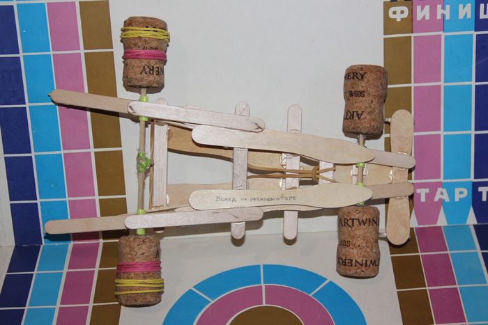 Гоночный болид "Формула-1" на резиномоторе из палочек от мороженого