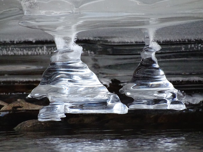 Очередная моя прогулка по зимней реке Раздольной, в январе 2018г., принесла в мою коллекцию, очередную порцию забавных ледышек. Иногда, когда смотришь на все эти зимние "произведения", удивляешься и задаёшься вопросом : "Как обыкновенная вода, по сути, просто стекающая и капающая при потеплении или во время перепадов уровня воды в реке, приобретает такие причудливые формы. Впервые, я стал фотографировать подобные льдинки с 2016г., который был самым, как говорится "урожайным", в плане их разнообразия. И вот до настоящего времени, я, ещё ни разу, не встретил двух похожих льдинок.