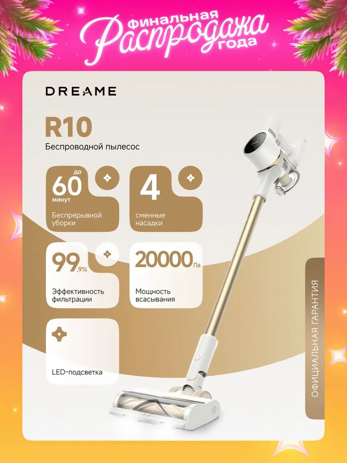 Отличный выбор Dreame R10 для всех, кто ценит качество, эффективность и заботу о здоровье своей семьи. Быстрая доставка за несколько дней + баллы за отзыв.