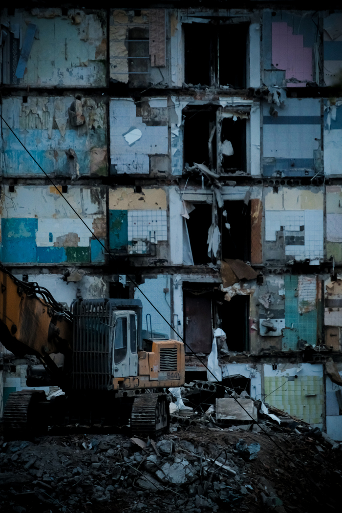Сейчас в нем активно хозяйничают специалисты из ближнего зарубежья. В оконных проемах виднеются следы демонтажных работ.
