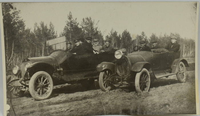Поэт Демьян Бедный едет в машине с сотрудниками «Крестьянской газеты» и журналистом-писателем Павлом Бажовым. Свердловск. 1926 год⁠⁠