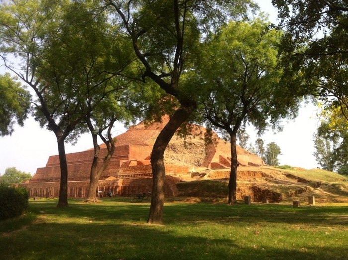 Далеко впереди, справа от дороги возвышается над деревьями громадная древняя ступа. Настолько огромная, что даже мусульмане, в XII веке сравнявшие с землей весь город, поленились ее разрушать. Ступа похожа на гигантский кулич, какие дети лепят в песочницах. Рядом есть еще несколько древних развалин и большой ухоженный парк. Все это историческое великолепие обнесено высоким забором, и пускают туда по билетам.