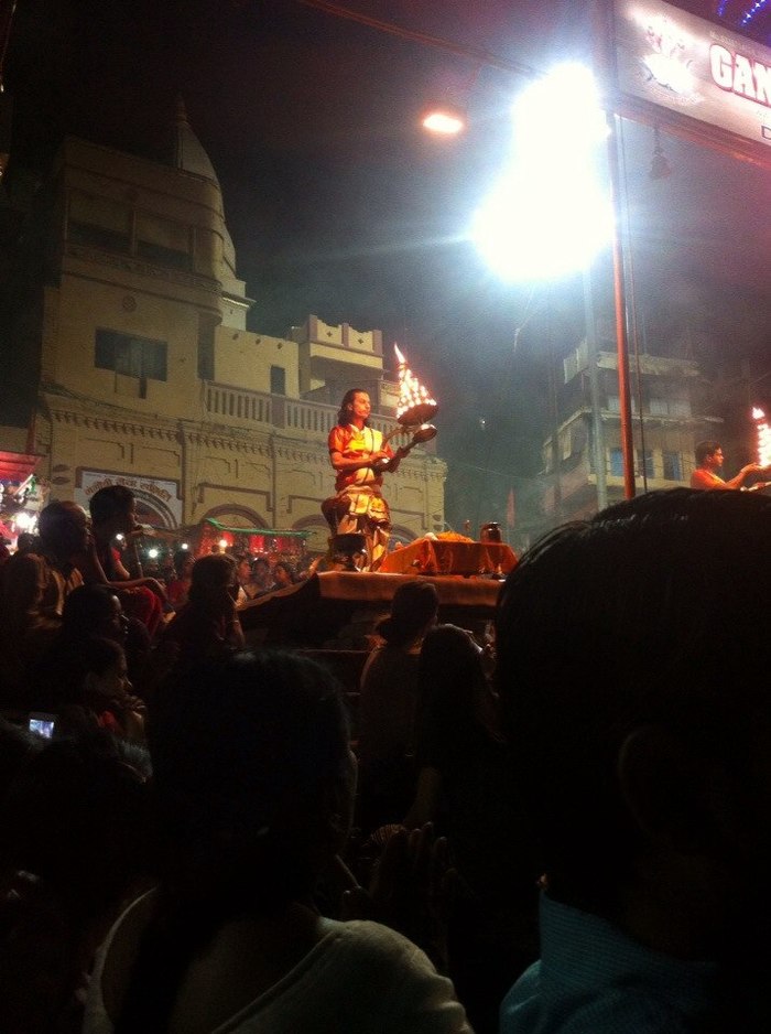 Как и в случае с Маниакарникой, рассказывать историю и сценарий этого религиозного действа нет никакой необходимости. Информации много. Про обряд написано во всех путеводителях, сотни туристов каждый день фиксируют происходящие, чтобы потом пополнить фотографиями свои блоги, залить видео на YouTube.