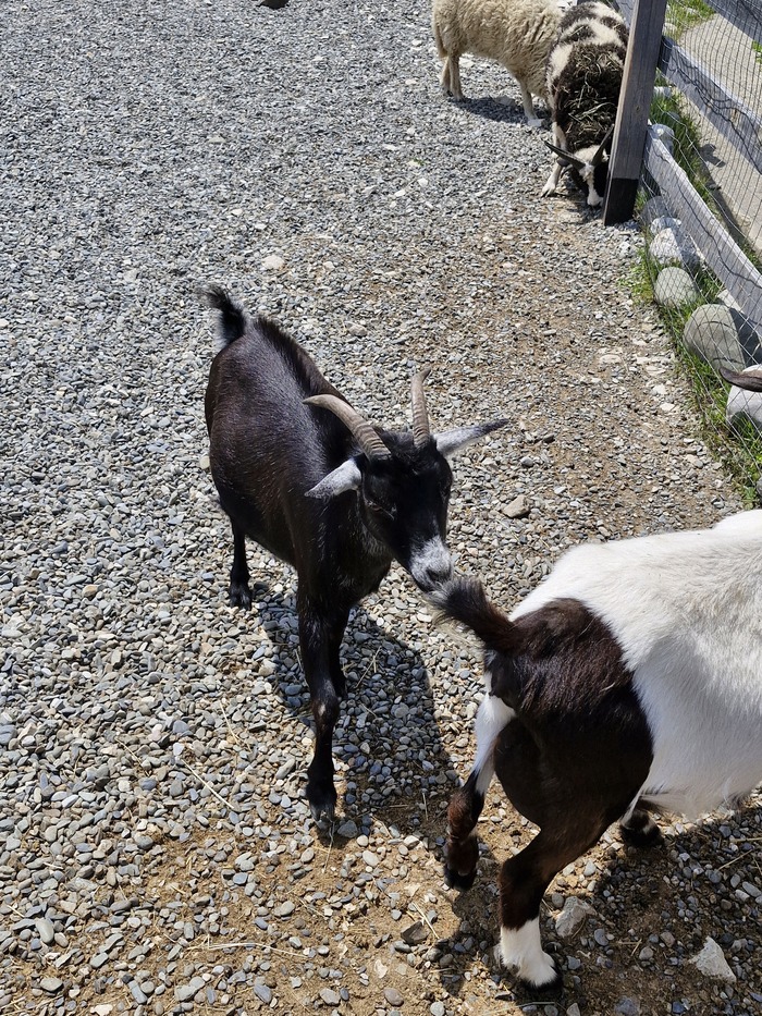 Сопровождающие заводят гостей в 3 вольера - в первом альпаки, во втором кролики, в третьем - козы. Одну группу, видела, завели ещё в четвёртый вольер, к баранам. Нас не водили.