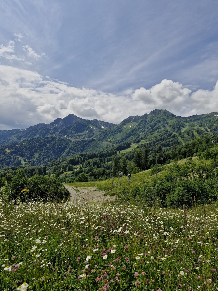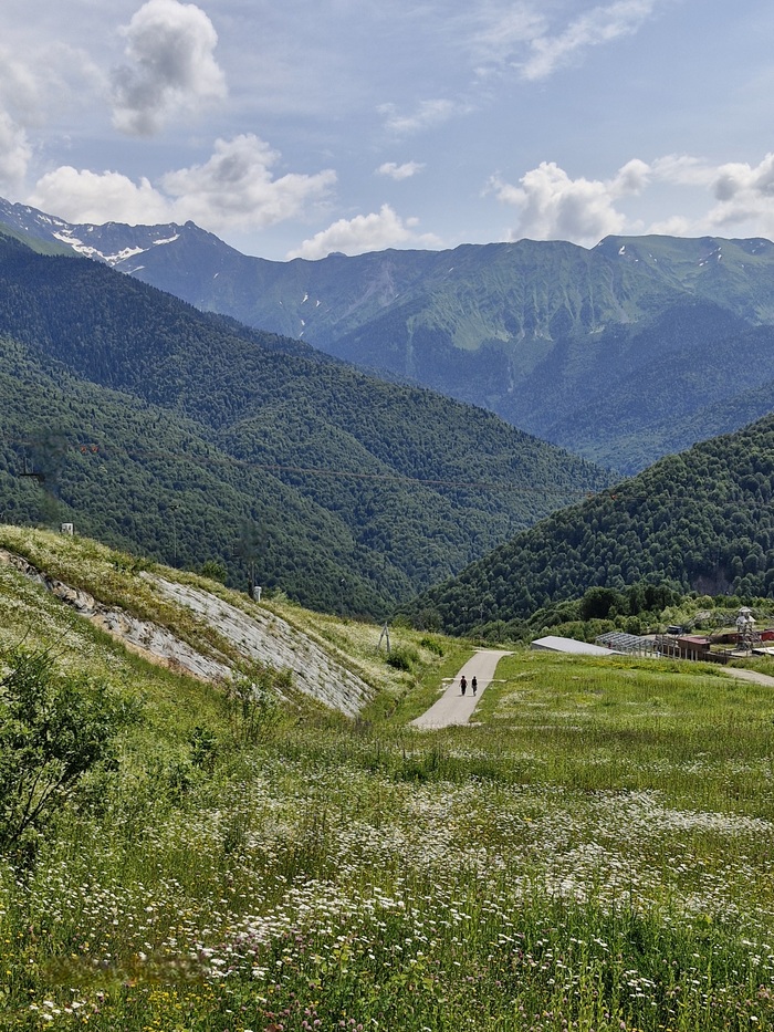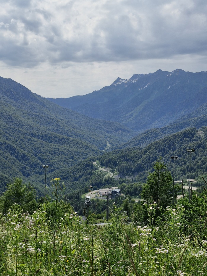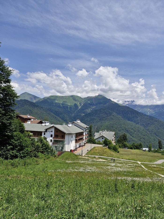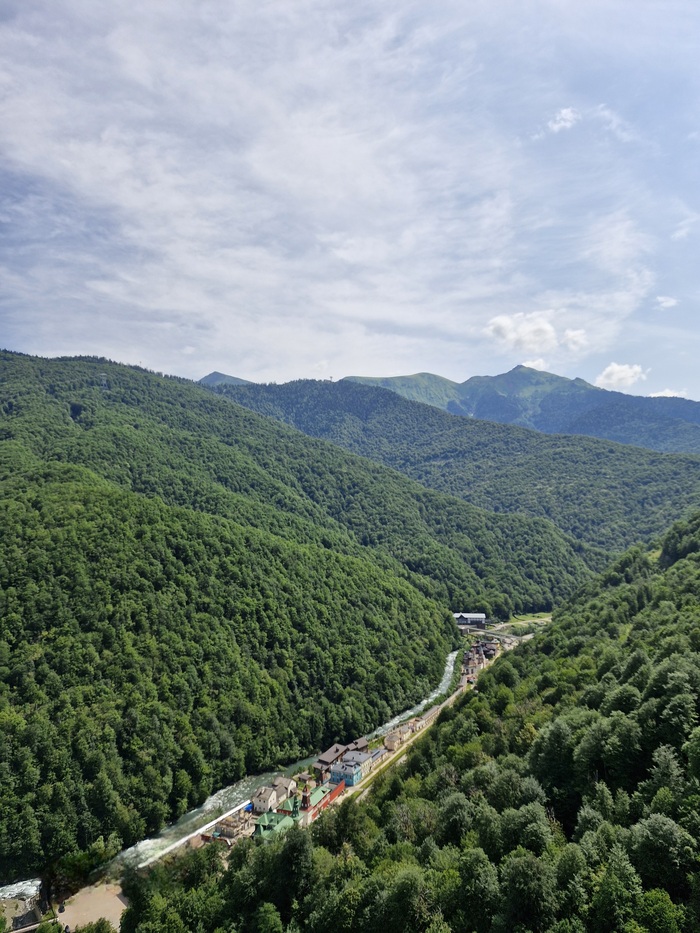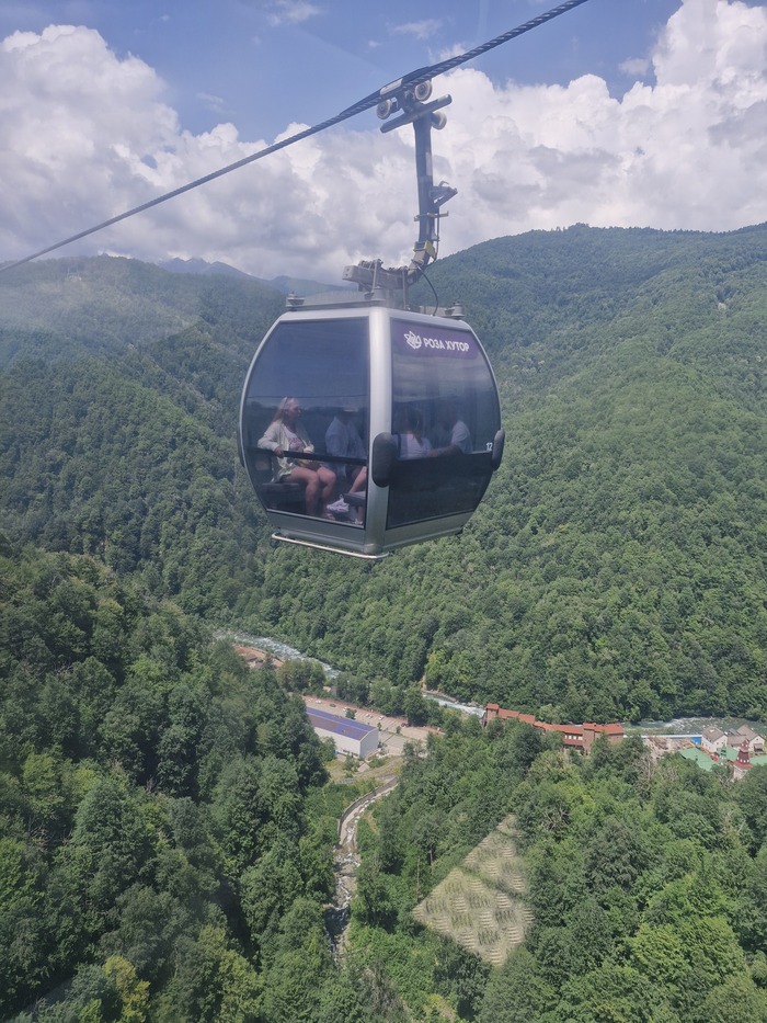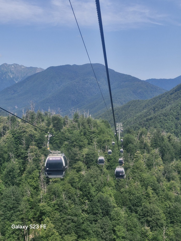 Мы сразу выдвинулись на канатные дороги в стоимость входит 3 закрытые канатки первая называется " олимпия" , которая и поднимает в олимпийскую деревню на время "Сочи 2014", проживали спортсмены ,позже её переделали в гостиницы и развлекательные локации достаточно большая территория, следующая канатная дорога называется "заповедный лес", мы сверху долго не оставались, но там есть музей Йети и открытая канатная дорога "волчья скала" которая вас катает по кругу над местными красотами ,которыми можно полюбоваться с высоты птичьего полёта, мы спешили подняться на самый верх на канатки " Кавказский экспресс ", на вершину " Роза пик" там открывались самые живописные виды , вокруг горы и облака просто захватывало дух было очень круто, на верху куча экстремальных развлеченией : воздушные мосты , качели, баги,квадроциклы очень много разнообразных туристических троп,но мы приехали за видами было очень красиво.