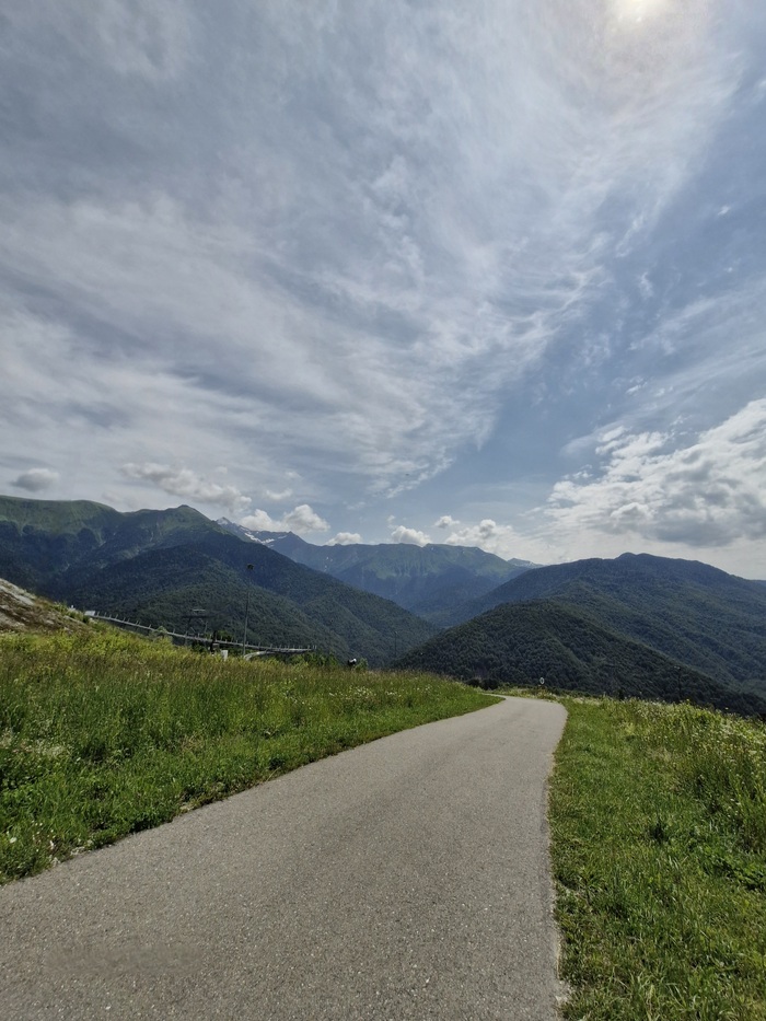 Встал рано утром, пошел гулять по набережным Роза Хутор. Спортсменов огромное количество, целые отряды мелких гимнасток лет 8-10 занимаются прям на набережной, приходилось обходить, но в целом утро на набережной самое спокойное и тихое. Днем пошел на тропу здоровья, это 2.4 км организованно и проложенной тропы по горам, это был очень интересный опыт, то круто ступеньки вверх, то вниз и ни одно ровного участка, в аннотации говорится что тропа занимает 1.40, но я прошел за 1.10, практически не отдыхал - очень советую попробовать, позитивный опыт. Там три hreuf? можно выбрать по своему здоровью.