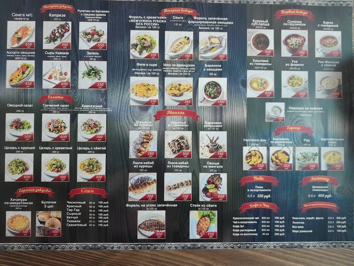 Сегодня у меня 7 сентября погуляли круто по центральному рынку Адлера завтра едем в Абхазию, но об этом и затратах я вам раскажу позже наверное завтра. ниже приложу меню кафе Рубеж может кому-то будет интересно