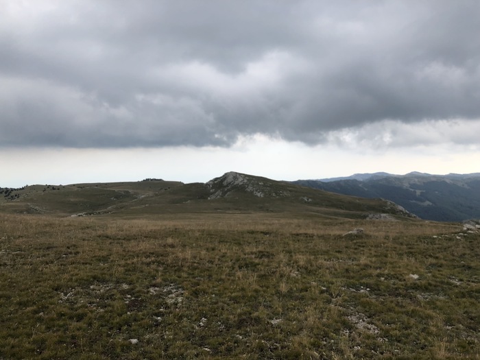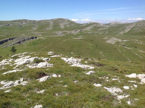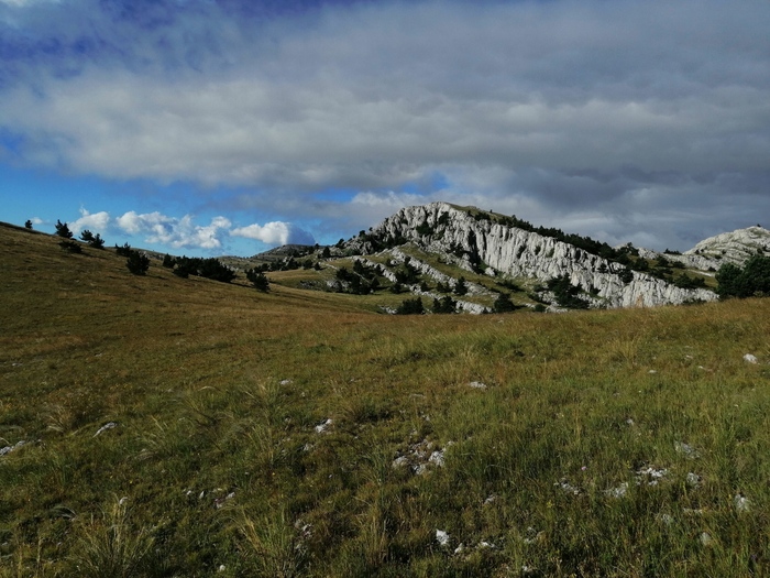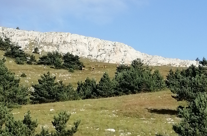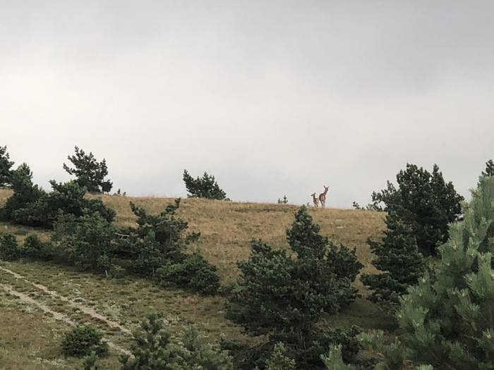 Сначала упорно карабкались в гору, а потом вышли на плато. Прошли по тропинке через всё плато - в восточной его части повстречалось много косульих семей по 5-6 голов. Только очень далеко, сфотографировать на тапок нормально не удалось.