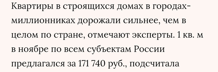 Средняя стоимость жилья в России в новостройках - около 170 тыр/м2