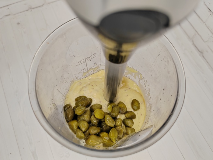 И так одну часть блюда мы приготовили, настало время заняться вторым, это майонезно-рыбный соус, который по факту очень сытный и яркий, можно использовать в отрыве от ростбифа, поливать им можно много чего... да и если честно, просто так есть ложкой - кайф.