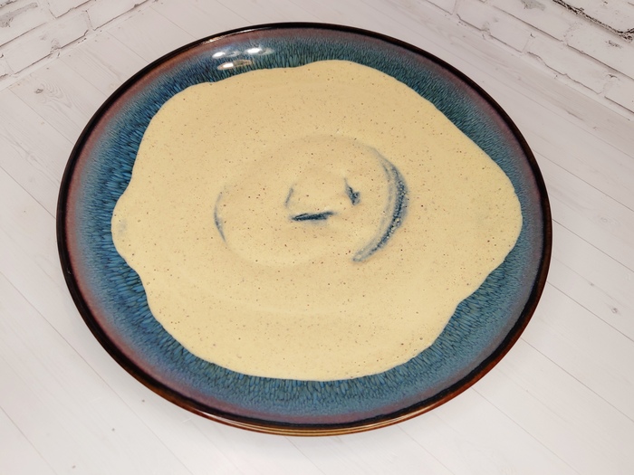Берем тарелку для сервировки, смазываем ее хорошим таким слоем соуса тоннато