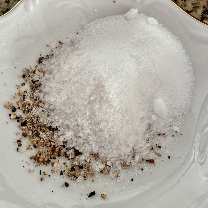 Обтираем кусок салфетками и натираем его солью-перцем: не нужно прям втирать, нам это не потребуется, просто для усиления вкуса.