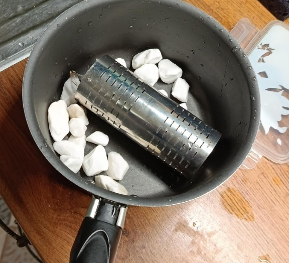 После чего обжег ее горелкой, и, снова сняв лишнее наждачной бумагой, покрасил в два слоя белой краской.