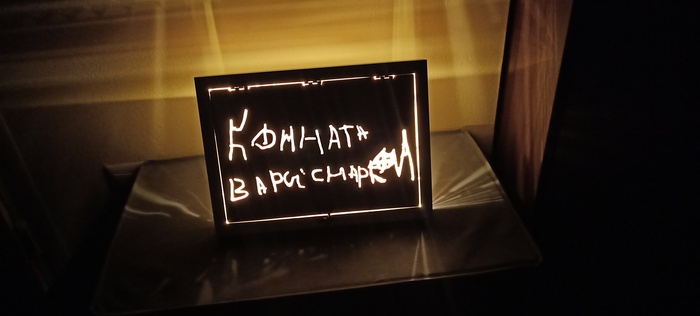 При вручении подарка рассказал всю предысторию, попросил юную ученицу написать еще раз ту же самую фразу, что и летом. В этот раз она справилась куда быстрее, да и буковки более читаемы (лишняя буква «а» - это мелочи)). В будущем за стекло можно будет поместить другие достижения в учебе, будь то грамоты или дипломы, чтобы таким образом было видно, с чего она начинала свой путь...