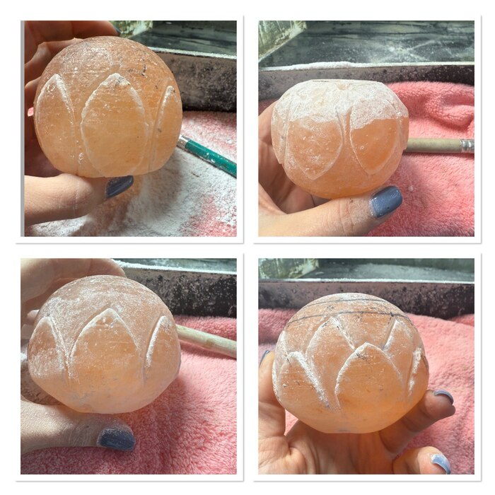 Я вырезала кувшинку, а получилось что-то вроде артишока ))) Выравниваю и шлифую, шлифовать соль это отдельное удовольствие, пока я вырезала кувшинку, просолилась так, что можно подавать к пиву)))
