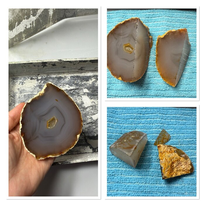 Следующая часть - сама Дюймовочка. Ее буду вырезать из агата, вот такая красивая горбушка, отрезаю от нее подходящий кусочек с минимумом рисунка