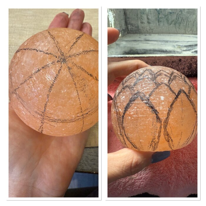 Все нарисовала, начинаю вырезать и, вот неожиданность, вся разметка смывается, я забыла, что это соль и она растворяется в воде ... (для тех кто не в теме - камень режется под струей воды, так нет перегрева инструмента и камня, рез получается чище, а инструмент живет дольше).