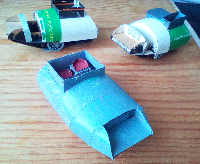 Пришлось при этом делать примитивное оборудование кабины. Два сидения и "баранка" руля.