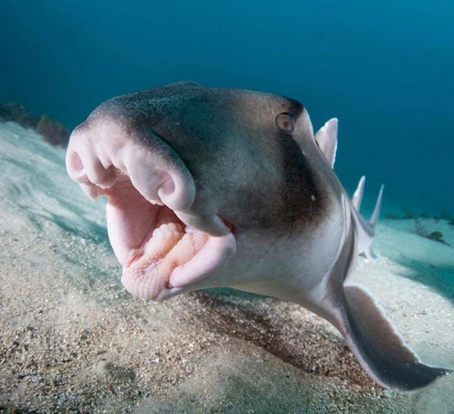 Друзья, перед вами одна из самых причудливых акул в мире – австралийская бычья акула.