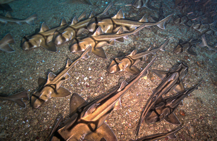 А ещё, чтобы пообщаться со своими. Удивительно, но взрослые акулы этого вида социально активны. Они собираются на песчаном дне подводных пещер для совместного отдыха, проводя вместе довольно много времени. Причём группы формируются с учётом размера, пола и возраста: общаться австралийские бычьи акулы предпочитают с ровней.
