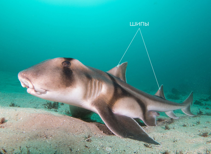 А молодые акулы способны засасывать жертву, закопавшуюся в песок, при этом песок высыпается обратно через жаберные щели. Если вам мало впечатлений от ротика, носика и жаберно-дыхательных навыков, то у акулы для вас есть ещё пара сюрпризов. Ну для начала, она ядовита! Яд, содержащийся в шипах спинных плавников, бычья акула использует для самозащиты. Всегда ведь найдётся хищник побольше. Токсин этот слабо изучен, но, по мнению ряда исследователей, имеет парализующий эффект и к смерти не приводит – только даёт время, чтобы успеть смотать удочки.
