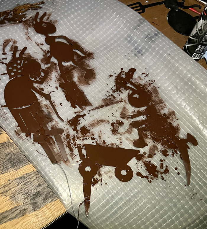 Все снова в деле. Одному, который с граблями, пришлось приварить на место оторванную голову. Ничего, держится)